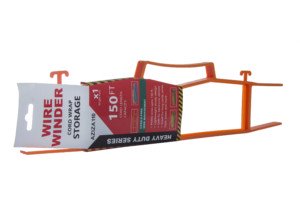 The wire winder is an excellent and simple way to wind and store just about any cord, including but not limited to electrical cords, ropes, holiday light strings, and short lengths of hose and chains. It will hold up to 150ft of extension cord with hooks provided on the top for plug on receptacle ends for easy access. Excellent storage device for organizing untangled wires and quickly wrapping up to finish the day. Manufactured from high quality prime polypropylene to last year after year and designed in electrical safety orange and yellow colors. Packaged in single or twin pack.